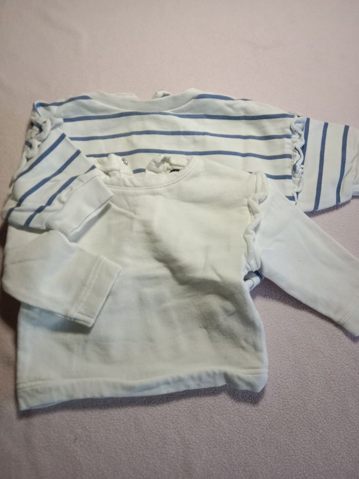 Lot de 2 pulls fille Blanc (Kiabi) Bleu et blanc coupe oversize (Texbaby) 3 mois