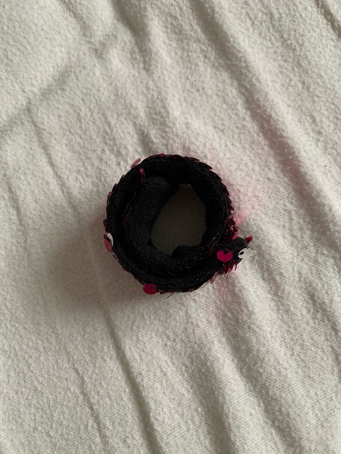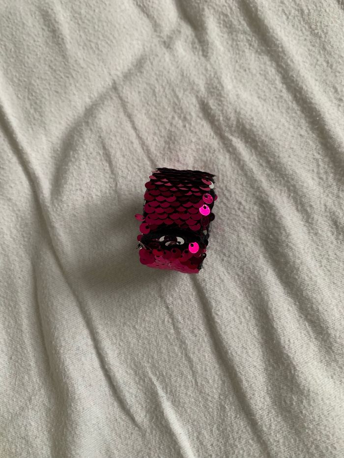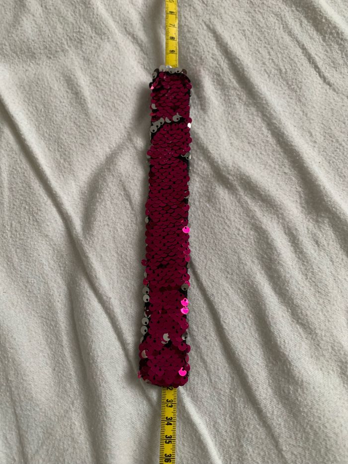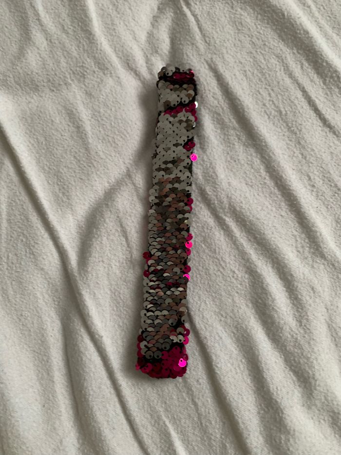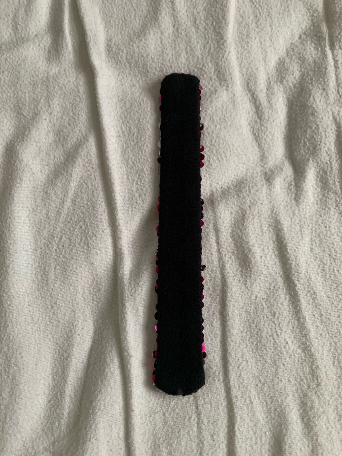 Bracelet à sequins amovibles vous choisissez soit le côté rose soit le côté argenté, bracelet adaptable car s'enroule au poignet quand on le tape sur le poignet, l'intérieur du bracelet est en matière douce de couleur noire,