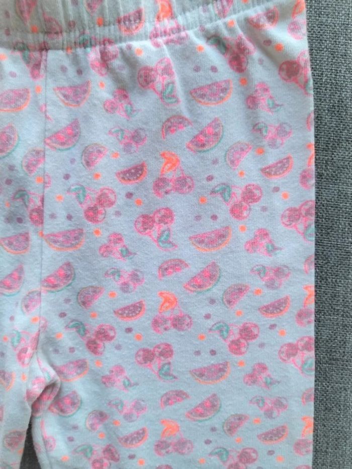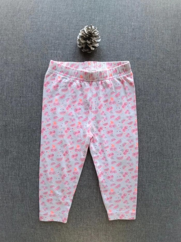 Legging léger, imprimé cerises et pastèques roses sur fond blanc.
