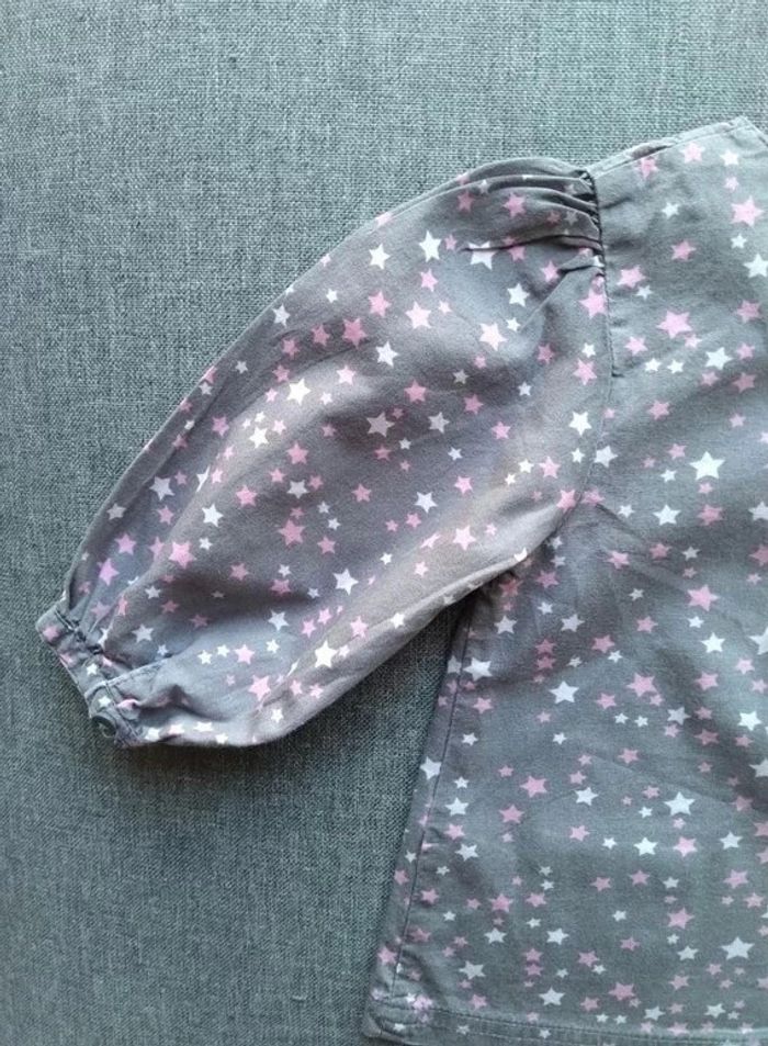 Haut / Tee-shirt / Blouse à manches longues, plissées sur les extrémités. Boutons de décoration sur le devant et boutons pressions pour l'ouverture du col dans le dos.