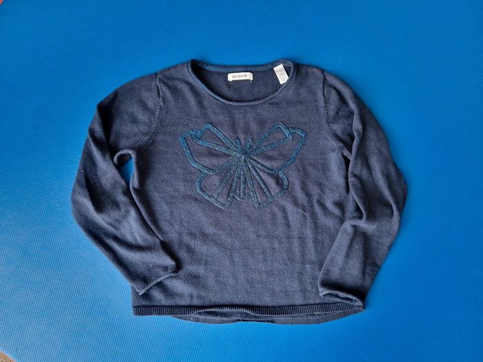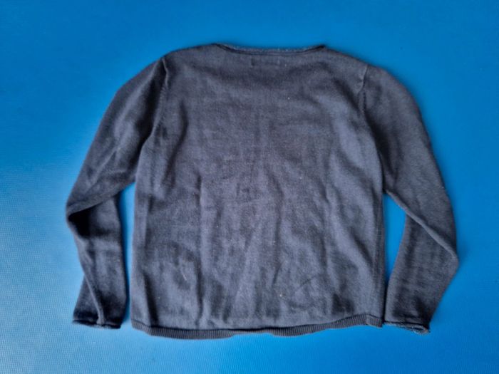 Pull bleu très doux avec motif en fils brillants bleus. Très bon état. Contient un peu d'alpaga.