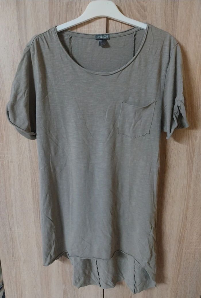 Tee-shirt long H&M taille S beige foncé Petite poche à la poitrine Long et asymétrique 100% coton Bien porté mais bon état #gwen89350taille36