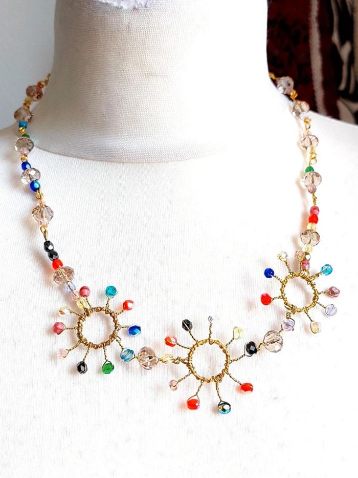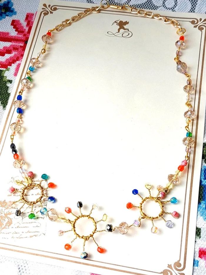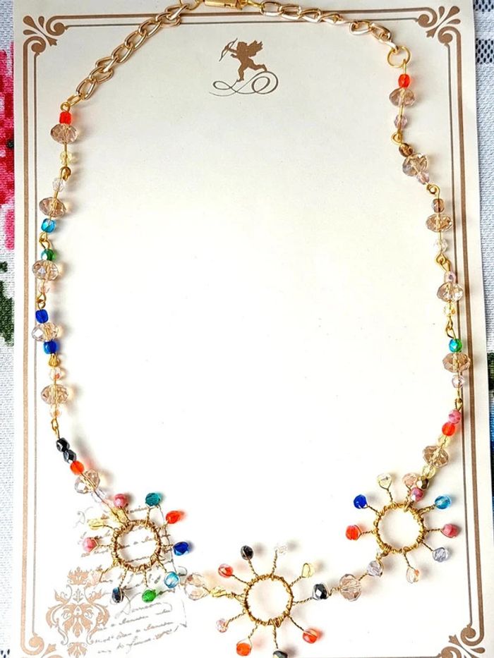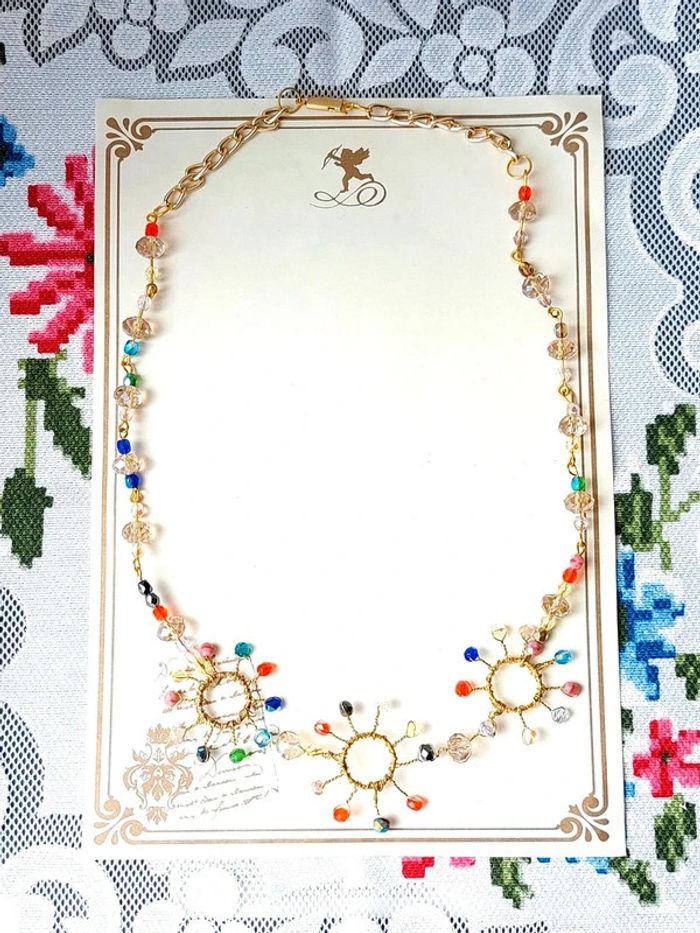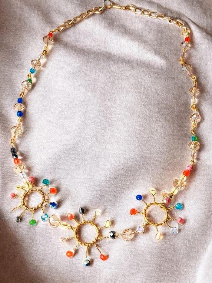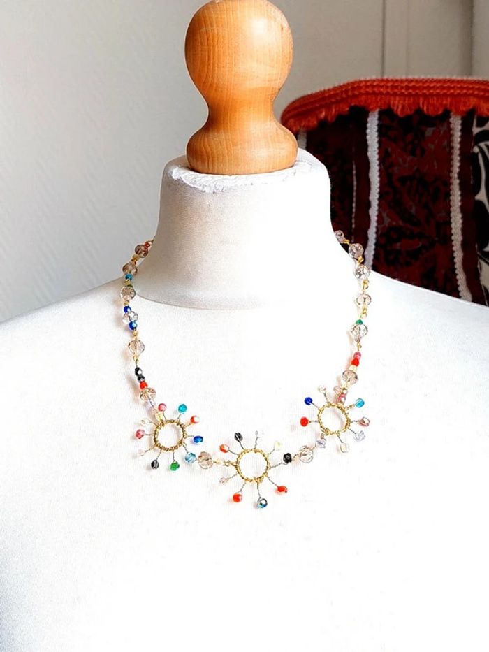 Magnifique collier style vintage, doré et perles multicolores. Très bon état. D'autres bijoux sont à découvrir dans mon dressing #bijouxsupernova 🌌 Je suis disponible pour d'autres renseignements / ou demandes de lot. 🌌 Les envois se font soit le jour même ou en 72h maxi ! 🌌 J'accepte les offres raisonnables et les réductions sont activées sur les lots, de plus, un petit cadeau est toujours rajouté au colis. Tags Mode vintage chic hippie 60's 70's 80's 90's BCBG robe chemise pantalon jupe classe bijoux boucles d'oreilles collier pendentif bracelet celtique ethnique bohème ésotérique gothique punk grunge old school geek ancien brocante friperies france Paris parisienne qualité couture tournesol marilyn Monroe astro cosmétiques produits de beauté tissu japon breloque acier inoxydable plaqué or automne hiver printemps été Noël cadeau lune moon child fleurs petit prix réduction lot chouchou scrunchie rétro kawaii japon t-shirt débardeur tunique blouse chemisier camisa camicia vestido vestito pantalones remise lotes jurk Flores brillant coton polyester satin soie jeans elastane sexy élégant pièce rare rome Madrid multicolore noir blanc rouge bleu jaune vert rose orange violet marron pas cher soldes 50% unique look outfit tenue complète conjunto