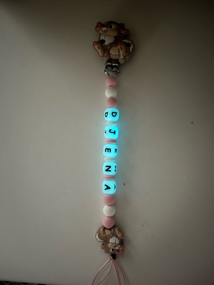 Attache tétine personnalisé en silicone ou en bois au souhait de l’acheteur . Personnalisable au choix de l’acheteur que ce soit la couleur comme le prénom ou le thème . Le fil est doublé pour plus de sécurité tout le long de l’attache tétine. N’hésitez pas à me demander et regarder mon dressing. Une photo vous sera envoyée avant l’expédition pour vous ayez un aperçu du rendu. Tous les produits sont réalisés avec du materiel spécial conçu aux bébés , enfants.