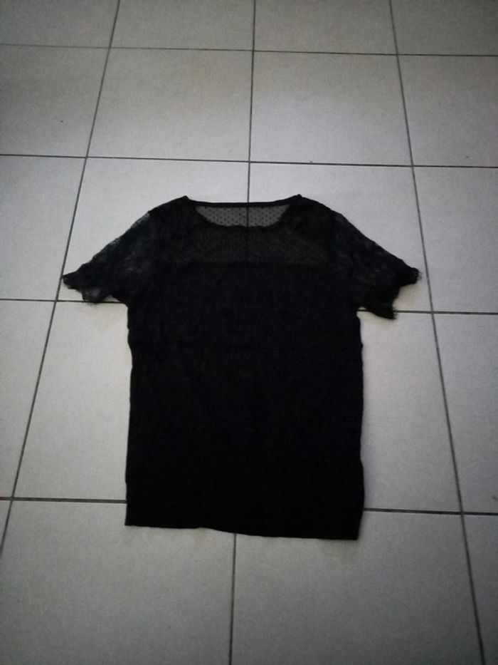 Manche courte effet dentelle sur le haut