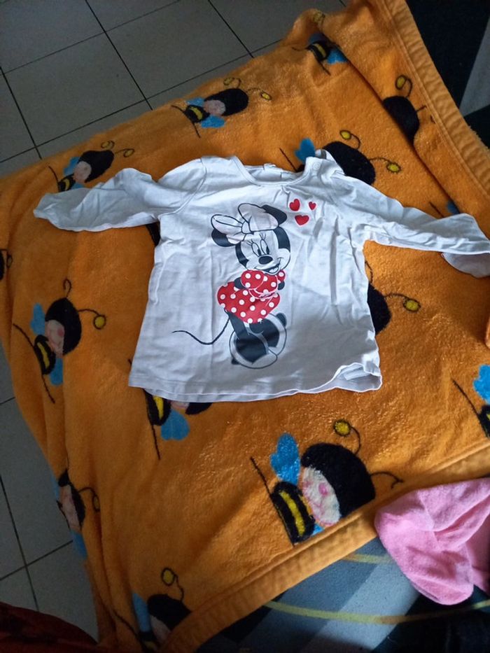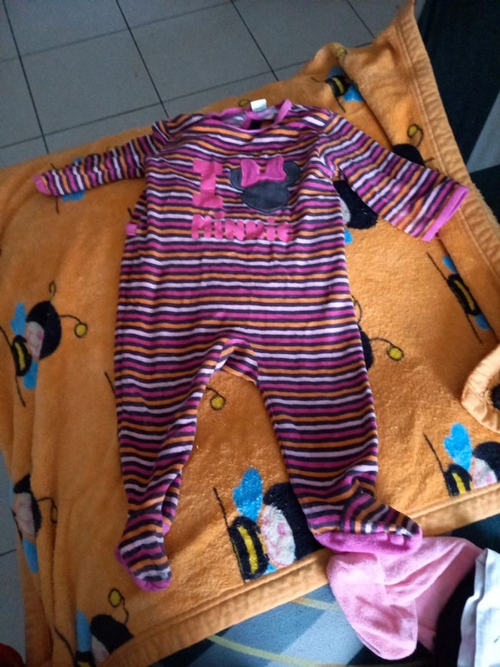 Ce compose : 1 pyjama velour 1 pièce kiabi " mademoiselle mini pipelette 1 ensemble velour 2 pièces orchestra 1 Tee-shirt Minnie Manche longue H&M 1 pyjama velour Minnie Disney baby 1 pyjama 2 pièces fluo la nuit Disney baby 1 gilet kitchoun 1 pyjama velour verbaudet 1 Tee-shirt Manche longue " un jour je serai grande comme Maman" 2 pantalons 1 orange 1 turquoise sergent major 1 boddie sans Manche sergent major 1 boddie Manche courte Marie Disney baby 1 Tee-shirt Manche courte Minnie Disney baby 1 Tee-shirt Manche courte "c'est moi la plus belle " 1 pyjama orchestra Je delote pas merci beaucoup 😉