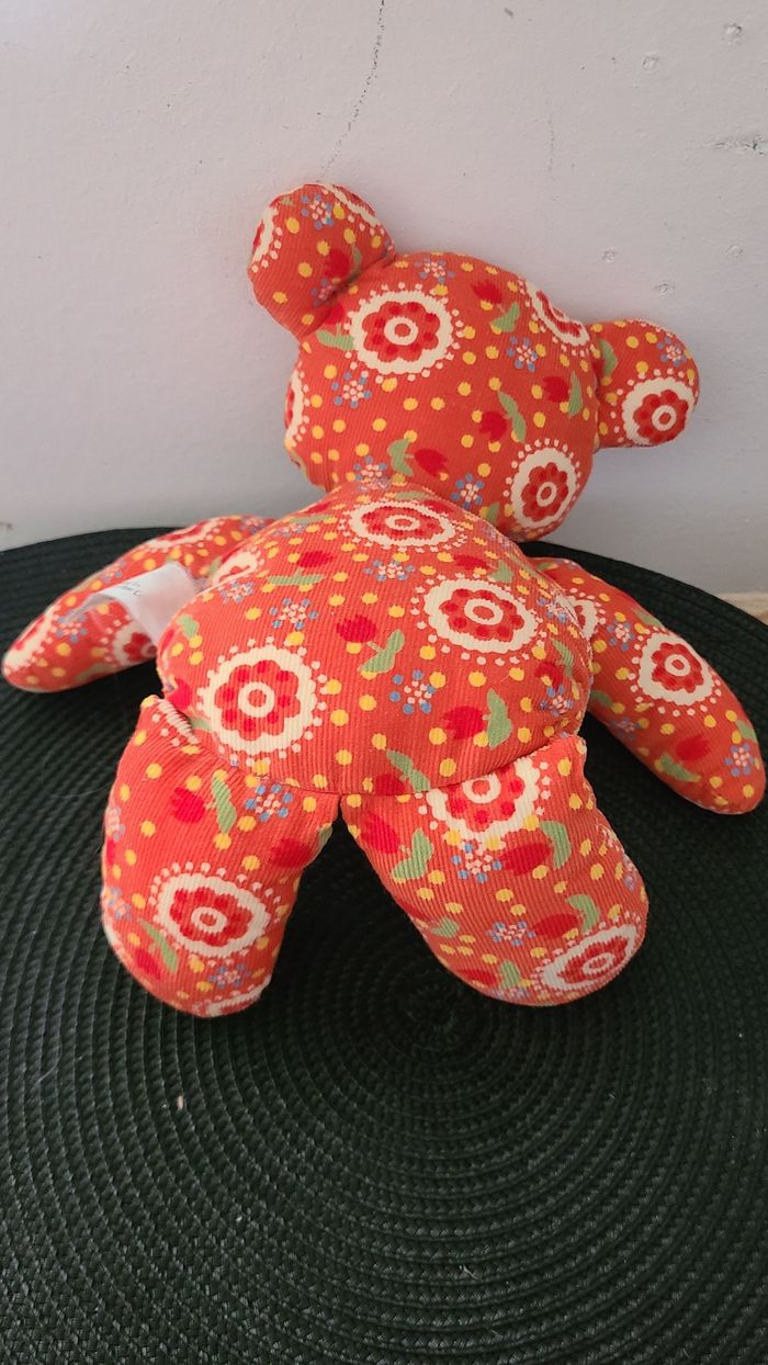 Doudou ours rouge orange fleurs DPAM DU PAREIL AU MEME - photo numéro 4