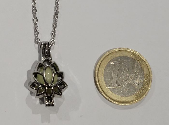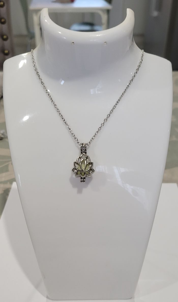 COLLIER FLEUR DE LOTUS ARGENTE PHOSFLUORESCENT ! NEUF ! - photo numéro 4