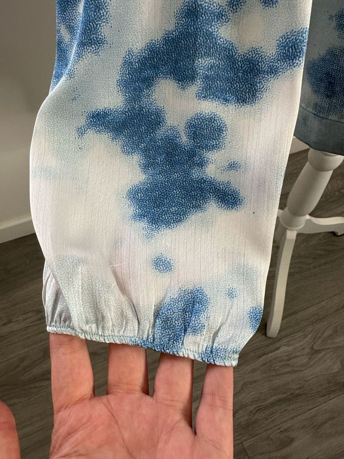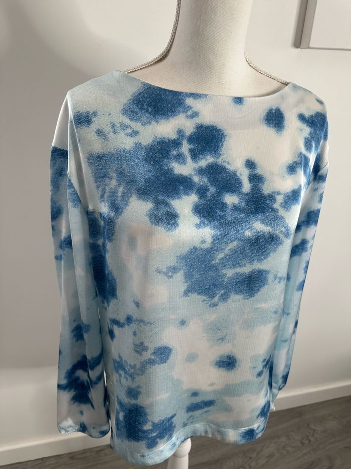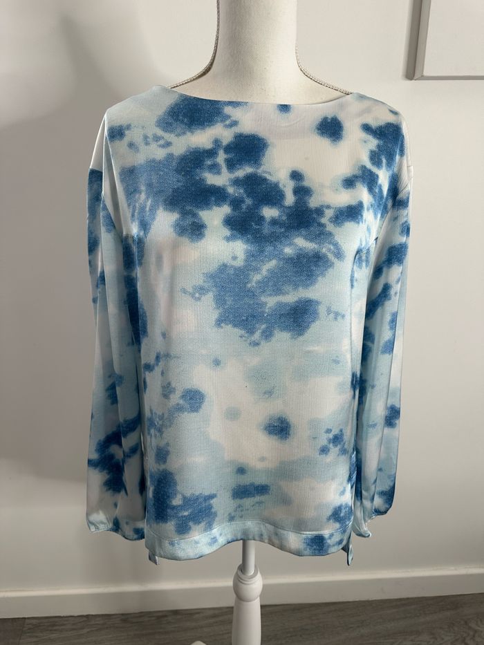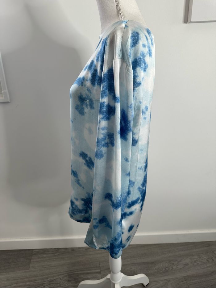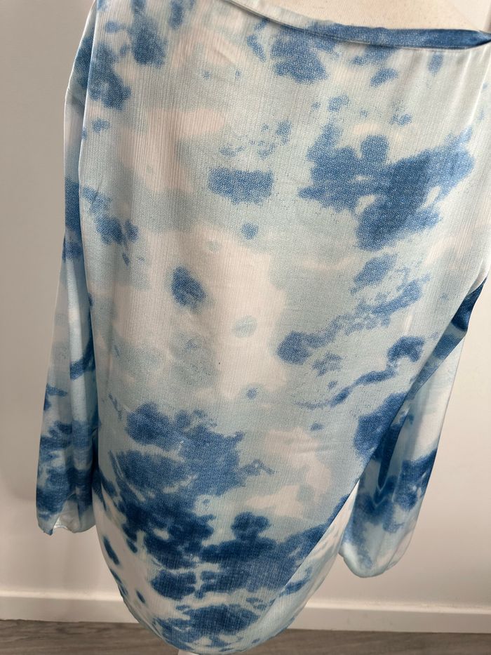 Blouse - Excellent état - Taille 36 équivalent S - Marque Lee Cooper - Coupe oversize - Tissus tie and dye - Bleue et blanche - Tissus fluide - Asymétrique, plus longue à l’arrière Dimensions: - 52cm niveau aisselles - 65cm de long à l’avant - 71cm de long à l’arrière