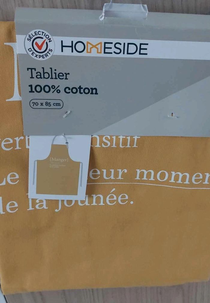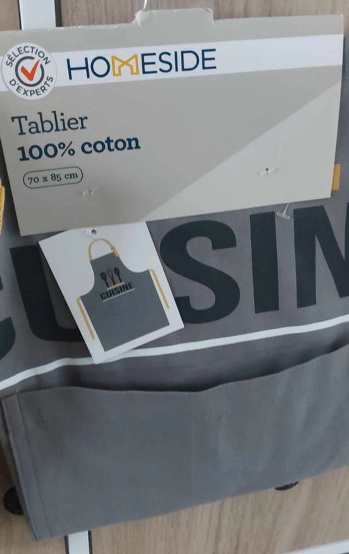 Vends lot de 2 tabliers en coton (100 %) de dimensions 70 x 85 cm. 1 tablier jaune moutarde 1 tablier gris clair Idéal pour cuisiner avec style ou comme cadeau. Prix : 8 € le lot (non vendus séparément). État : neuf, jamais utilisé