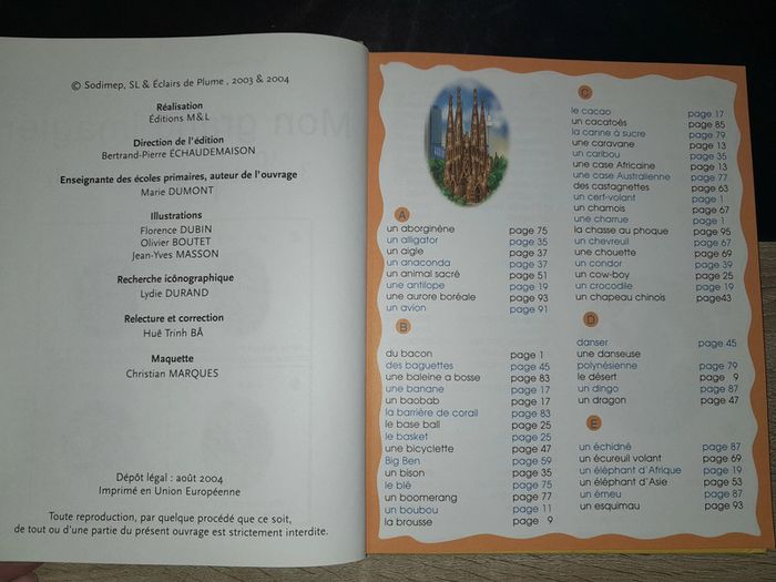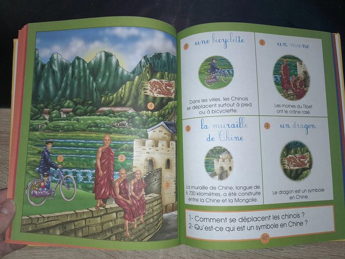 livre Mon grand imagier Les pays du monde écrit par des enseignants dernière page abîmée #livreenfantscoubi62 #scolairescoubi62 Cet imagier s'adresse aux enfants dès 4 ans. Son langage est simple et clair, très accessible l'enfant y trouvera l'ensemble des mots qu'il doit connaître à l'école maternelle. Pour l'aider à lire selon la méthode syllabique, les mots sont décomposés en syllabes et chaque illustration est accompagnée d'une phrase simple qui met le mot en situation. Au bas de chaque page, des questions se rapportent aux mots les plus importants et permettent de contrôler que l'enfant les a assimilés.