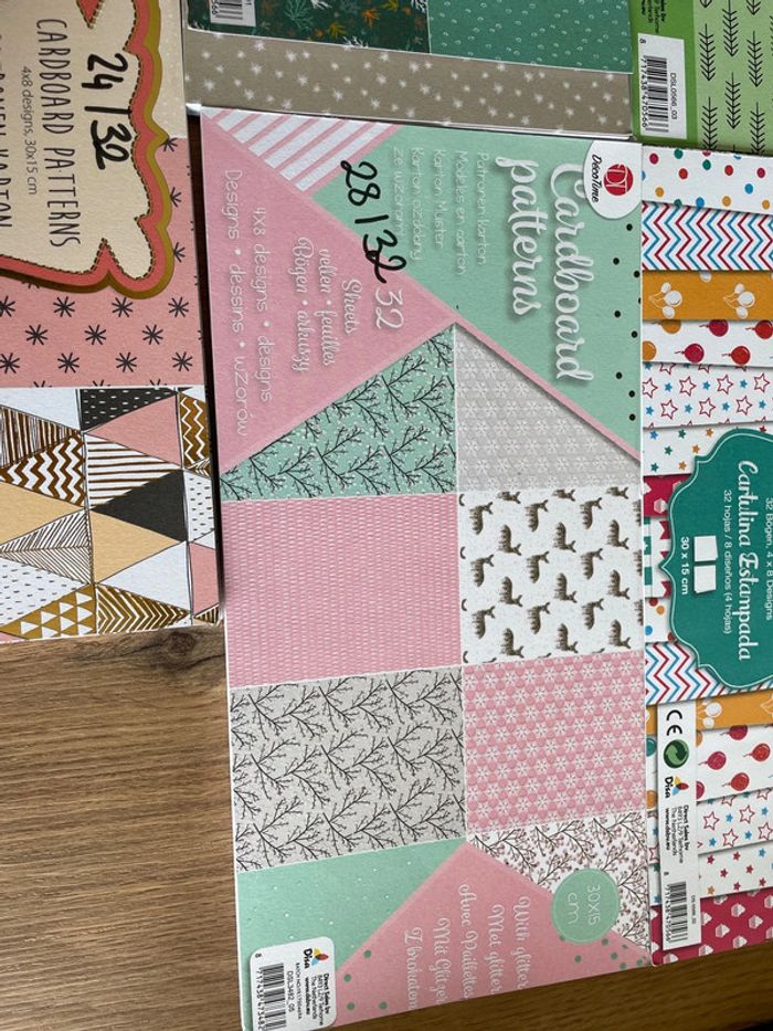 Lot de papier fantaisie pour activité manuelle/scrap Papier en 30x15 Nombre de feuille noté sur la page de couverture Bon état