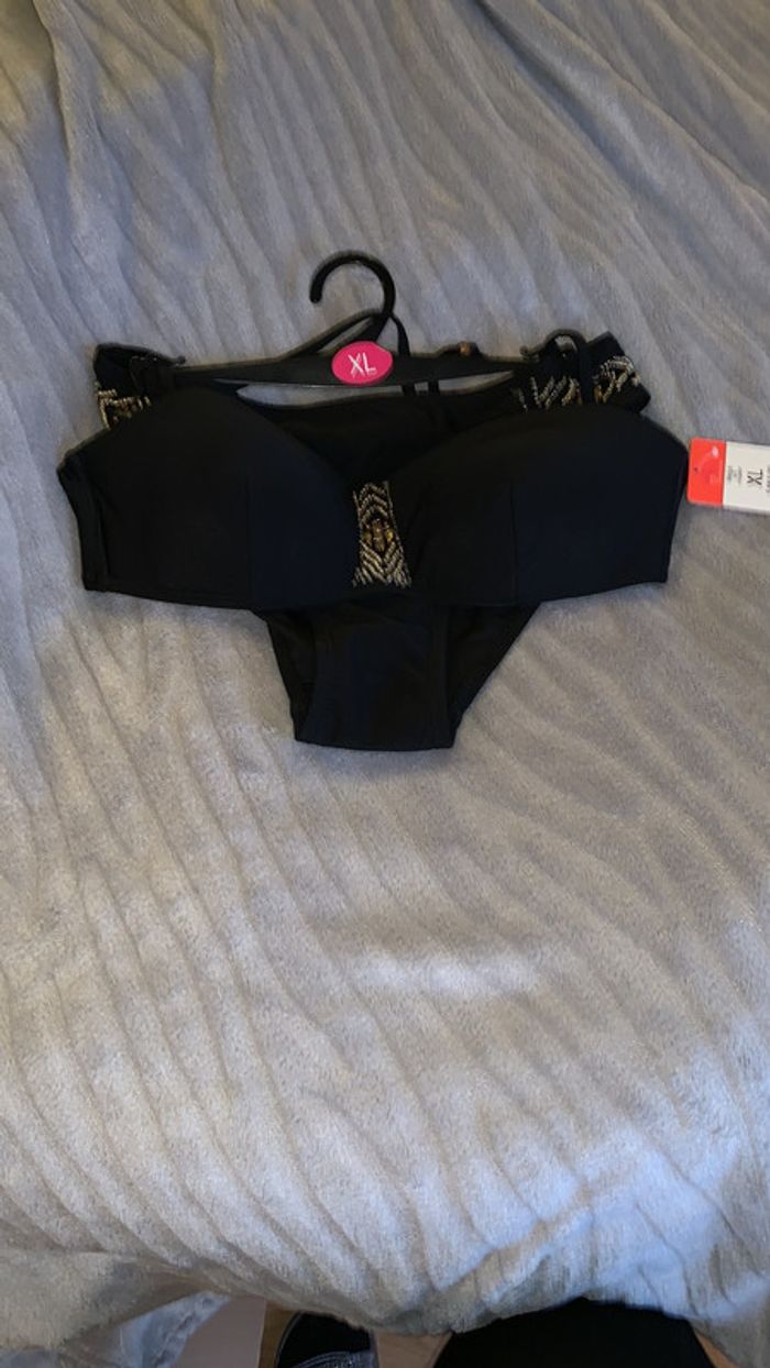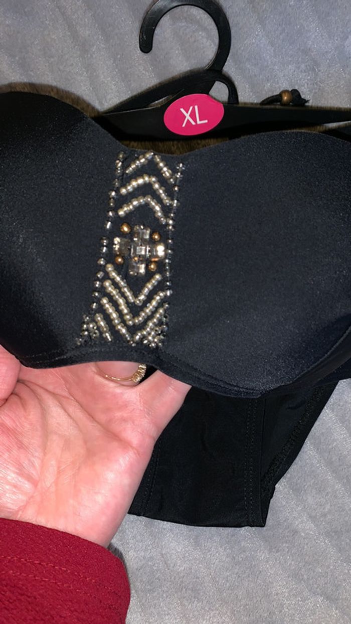 maillot de bain deux pièces de couleur noir avec perles taille XL (correspond selon l’étiquette à un 46/48 mais taille en réalité un 42/44 voir un 44/46) neuf avec étiquette #flova62femmexl