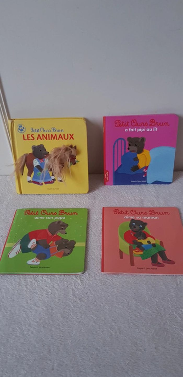 Lot de 4 livres petit Ours brun : - petit Ours brun aime sa maman - petit Ours brun aime son papa - petit Ours brun a fait pipi au lit - petit Ours brun les animaux