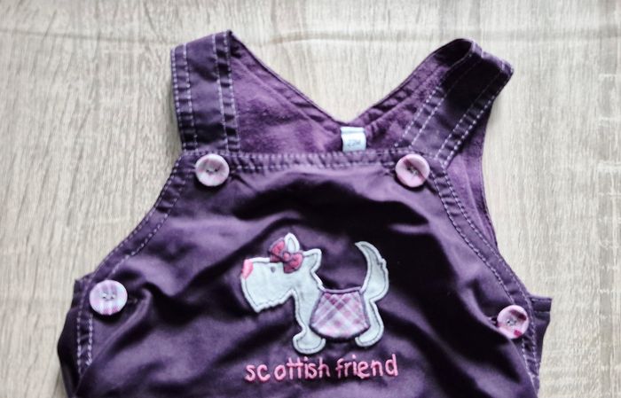 Bonjour Je vends cette adorable robe chasuble de couleur prune avec des détails à carreaux roses et violets. ​Taille : 23 mois (indiqué sur l'étiquette). ​Détails : - Broderie d'un petit chien blanc avec un nœud rose et l'inscription "Scottish friend" sur la poitrine. - ​Ceinture amovible à carreaux assortie au volant du bas. - ​Fermeture pratique par boutons sur les côtés et les bretelles. - ​Matière : Aspect coton résistant, idéal pour toutes les saisons avec un t-shirt dessous. - ​État : Très bon état. N'hésitez pas, j'envoie rapidement.