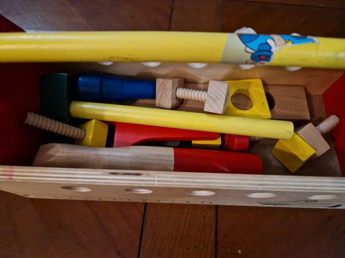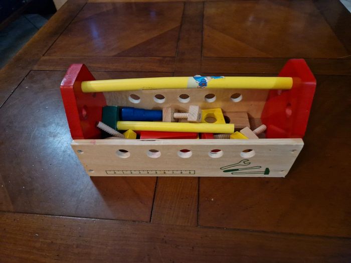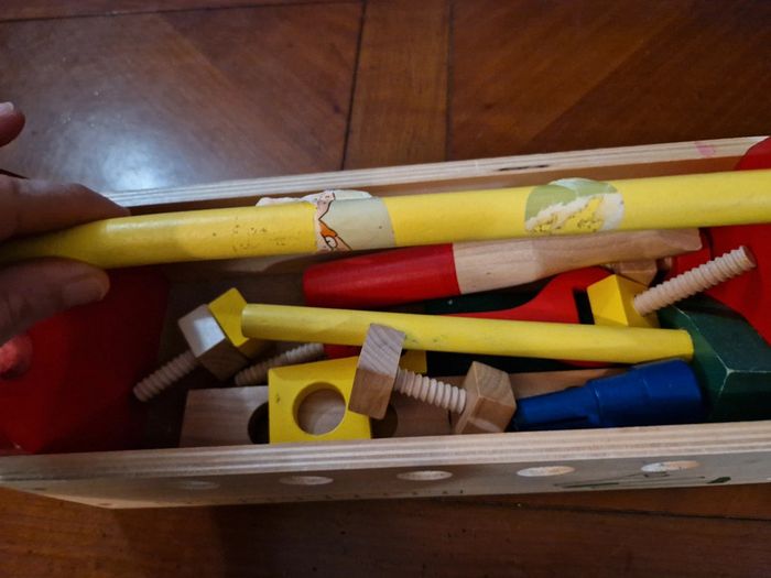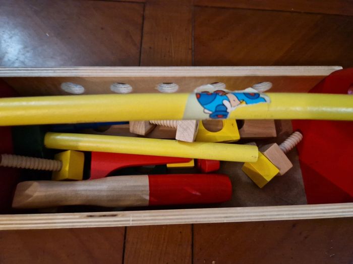 Mallette en bois. Il reste des gommettes que je n ai pas réussi à retirer