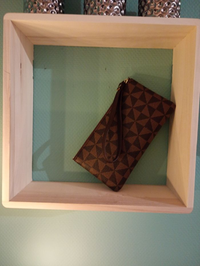 Pochette pour homme. Cuir PU brun motifs Camel. Largeur 17cm. Convient pour un téléphone et des documents ou un porte carte.