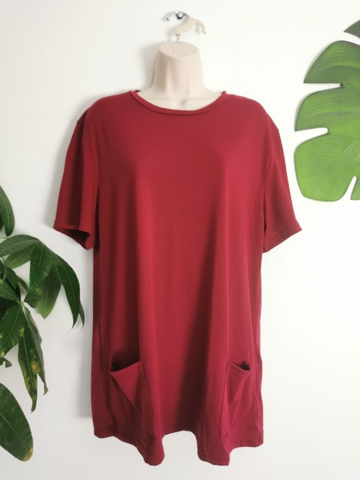 Tee-shirt long décontracté bordeaux avec poches Taille 2XL - photo numéro 1