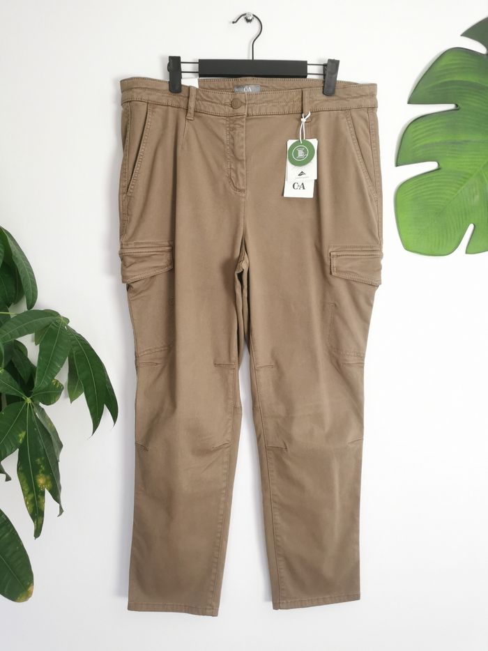 👖 ÉTAT DE L'ARTICLE: 10/10 ✅️ Avec étiquette🔖, jamais porté 📷 Photos portées du site disponibles en message privé 📷 Pantalon 👖 cargo 👩 C&A Taille 44 • Matière: 45% lyocell - 39% coton - 13% elastomultiester - 3% elasthanne • Tissu doux Tencel et extensible • Coupe cargo • Taille moyenne • Fermeture zippée ➕ bouton 🔘 • 2 poches avant - 2 poches arrière • 2 poches à rabat sur les côtés • Passants pour ceinture • Couleur: Beige / Brun 🟤 💰Prix boutique: 39.99€ • 📏 Longueur: 96 cm • 📏 Taille à plat: 45 cm Parfait état👌, avec étiquette🏷️, jamais porté 🟠🟠