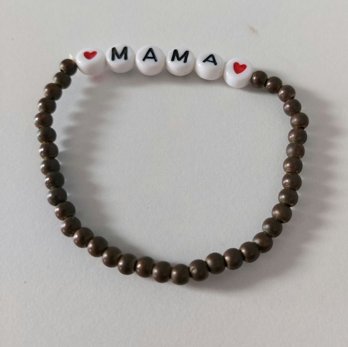 Je vends un bracelet élastique avec inscription Mama, pour des petits poignets. En très bon état.
