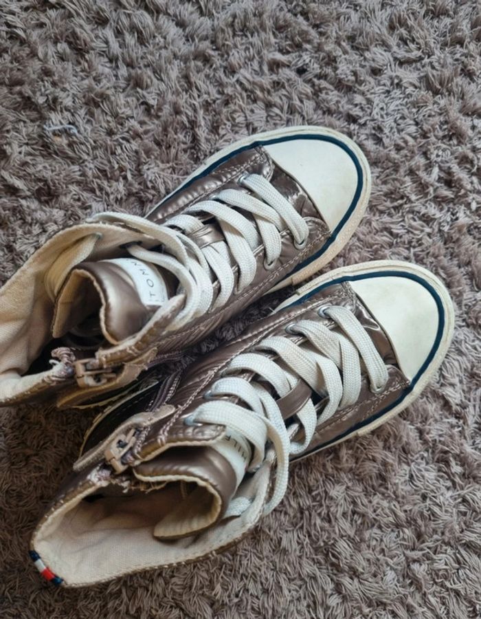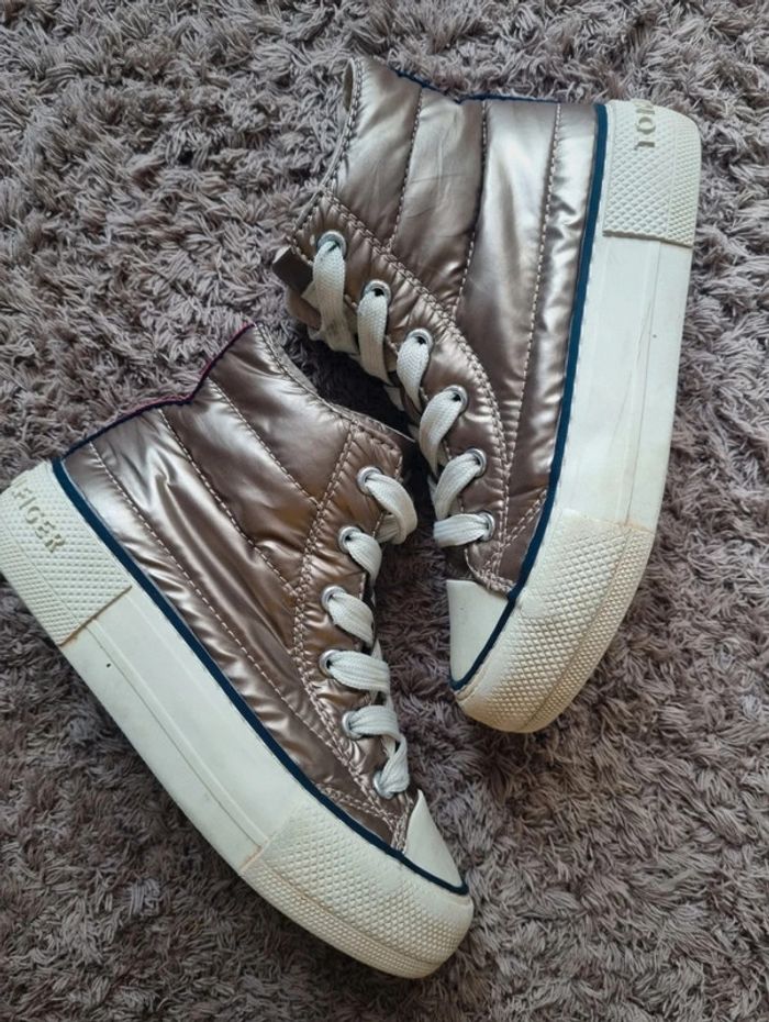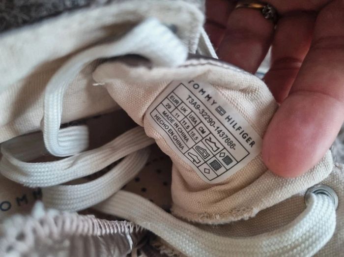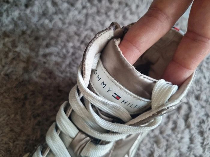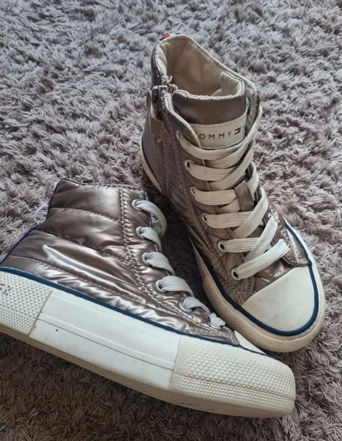 Baskets matelasser Tommy hilfiger taille 29 Model plutot rare. Mixte Couleurs bronze/ champagne. J'ajoute une photo car on me les avait acheter et en ouvrant le colis à couper une chaussure