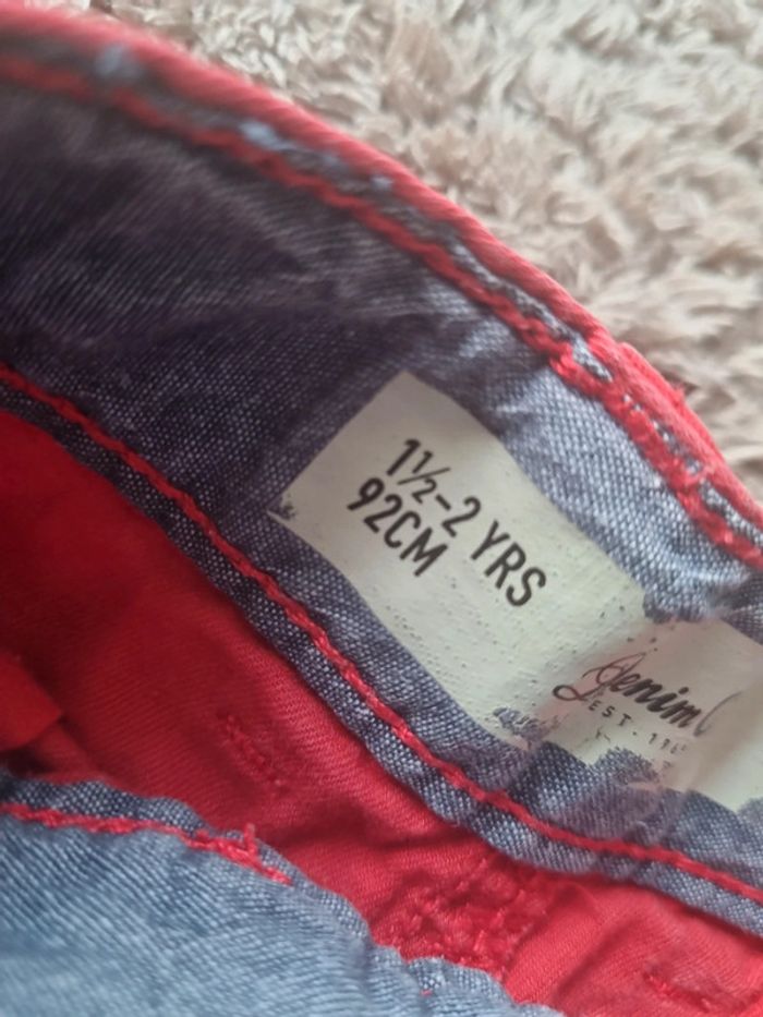 1an½ 2 ans 92cm Deux petites poches devant + deux poches décoratifs à l'arrière. La couleur est légèrement passer.