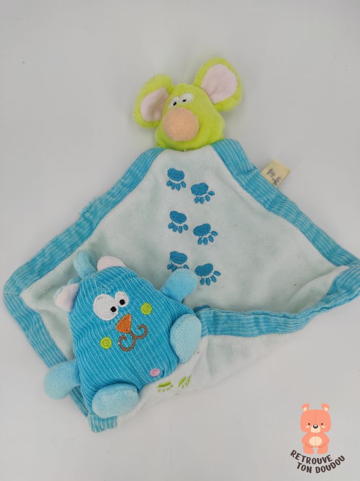 🐈 Doudou Plat réversible Chat bleu et Souris verte, empreintes brodées, Creativtoys 📏 Dimension : 16 x 16 cm environ ✨ Occasion, très bon état, initiales de son ancien propriétaire sur l'étiquette 🧼 Lavé avec lessive hypoallergénique 👀 Vous achetez la peluche que vous voyez sur les photos Sur mon dressing , remise de : 😊 -10% dès 2 articles achetés, 🙂 -15% dès 3 articles achetés, 😃 -25% dès 5 articles achetés, 🤩 -40% dès 10 articles achetés. 🚭 NON FUMEUR et sans odeurs d'animaux 📬 Envoi rapide sous maximum 3 jours