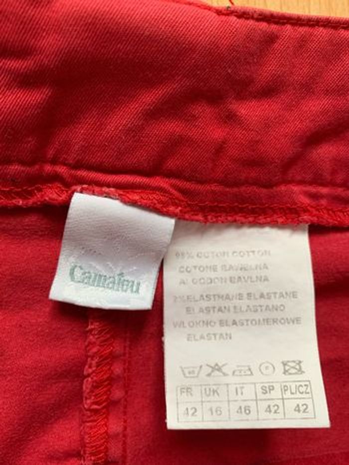 Bermuda rouge Camaïeu taille 42 Paraît rose sur les photos mais il est bien rouge et en parfait état Envoi rapide 📦 N’hésitez pas à consulter mon dressing pour regrouper vos achats car beaucoup d’articles à petits prix 😊