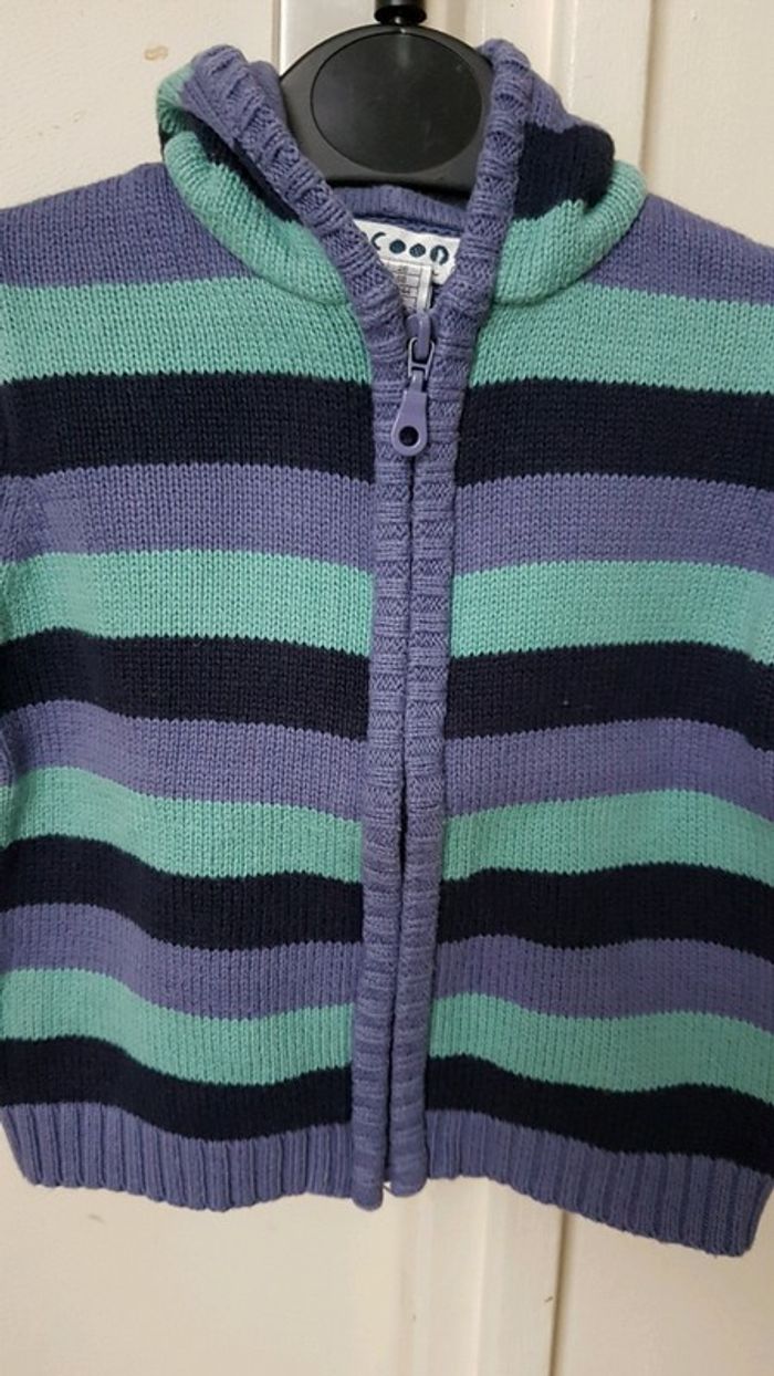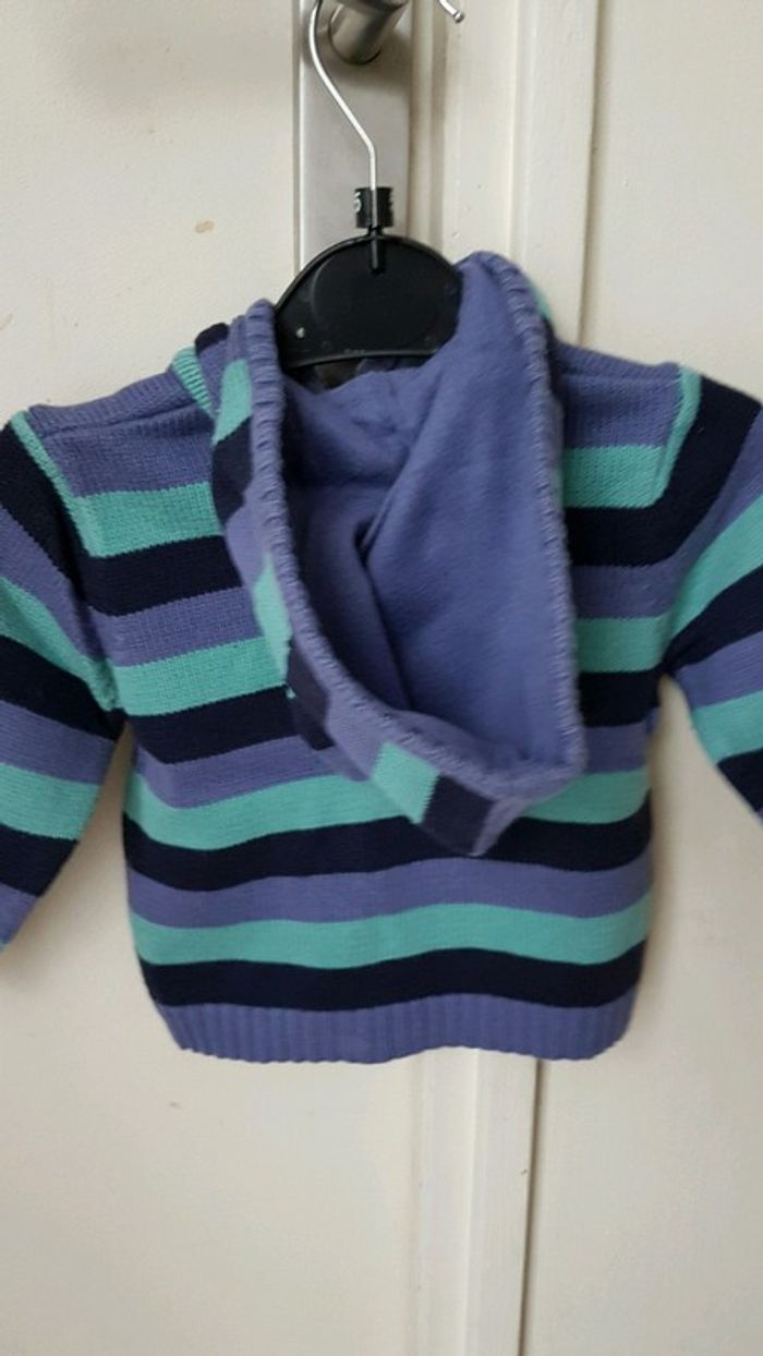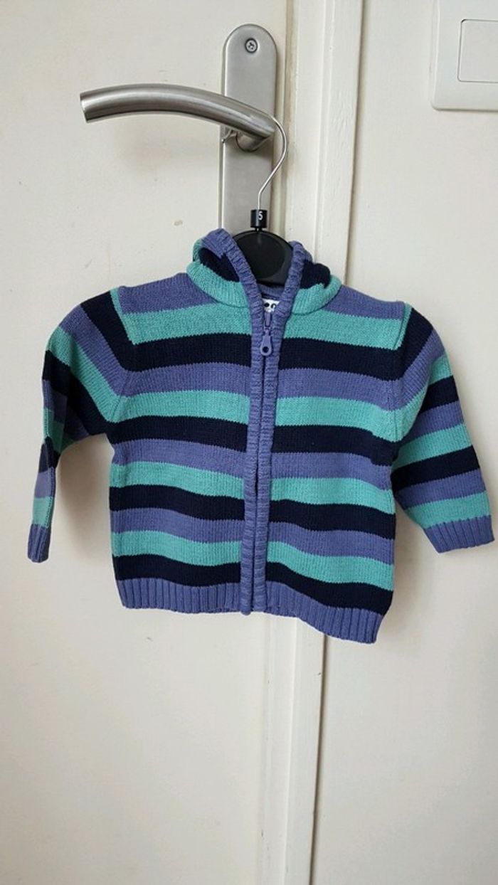 Gilet zippé à capuche rayé turquoise/noir/violet - T. 6 mois va aussi bien pour une fille que pour un garçon - TRÈS BON ETAT