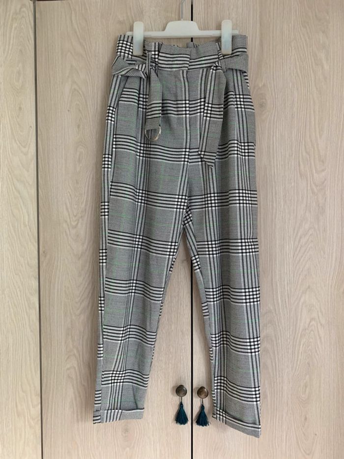 Pantalon écossais de coloris original taille haute avec ceinture