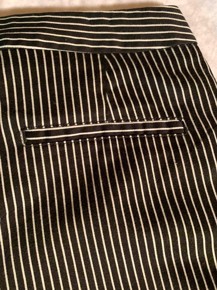 Pantalon coupe droite poches sur les côtés noir avec fines rayures blanches