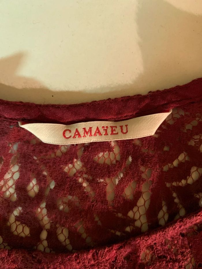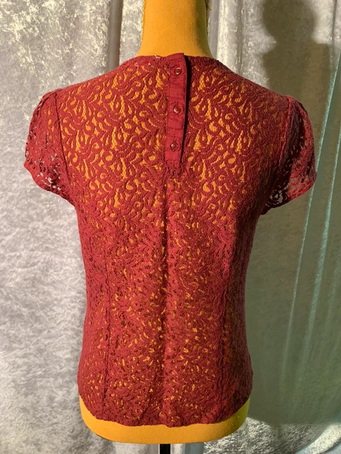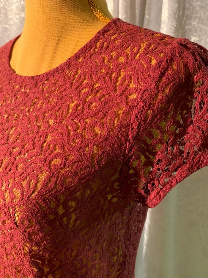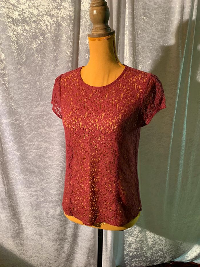 Joli haut façon dentelle Bordeaux effet de transparence