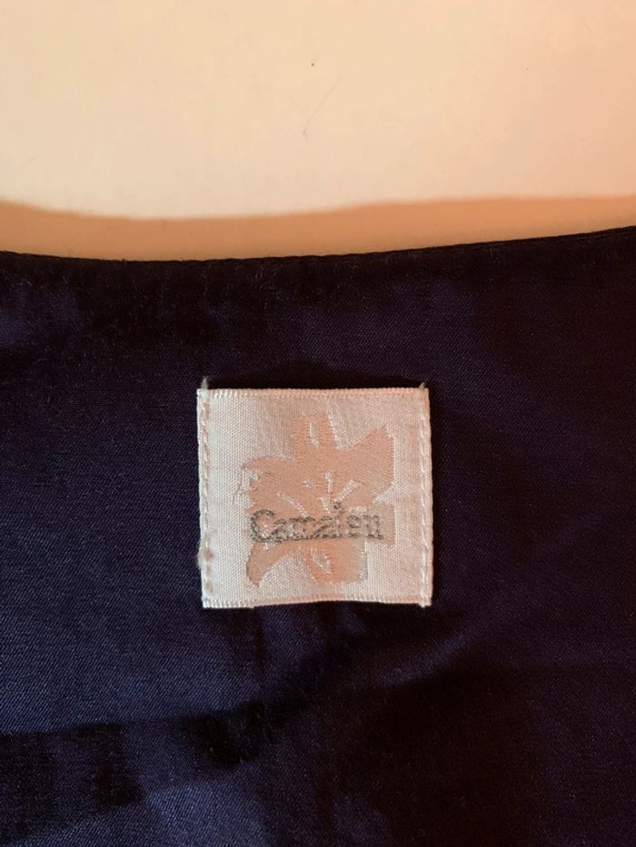 Petite robe forme trapèze. Tissus satiné. Très agréable à porter même l’hiver avec un petit sous pull