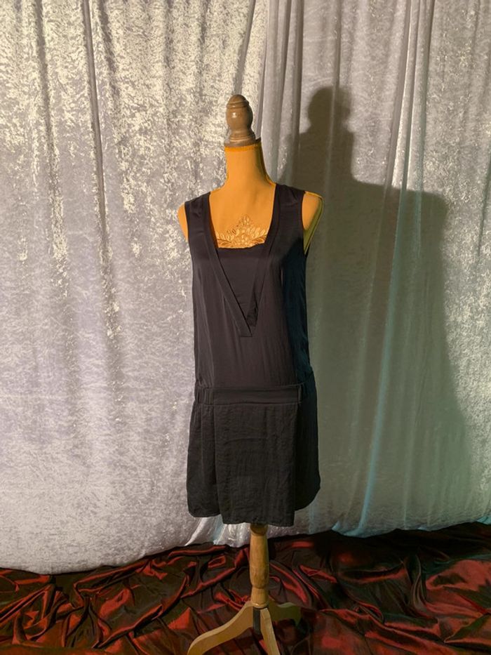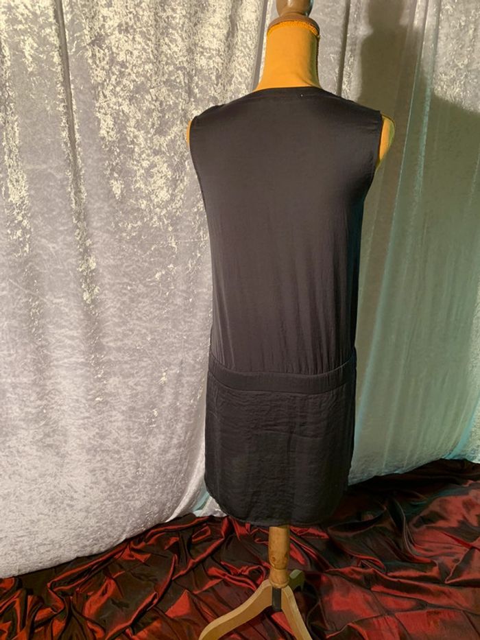 Robe fluide bleue avec un sous pull noir dessous pour l’hiver