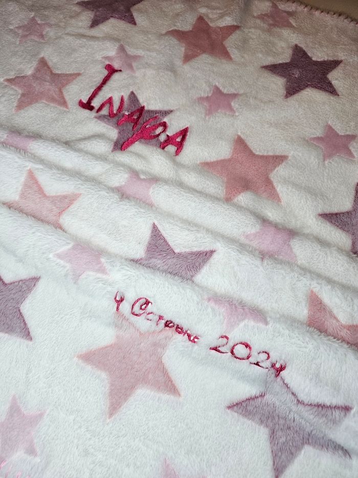 Couverture bébé personnalisée Taille 75x75 cm Prénom et date de naissance brodé