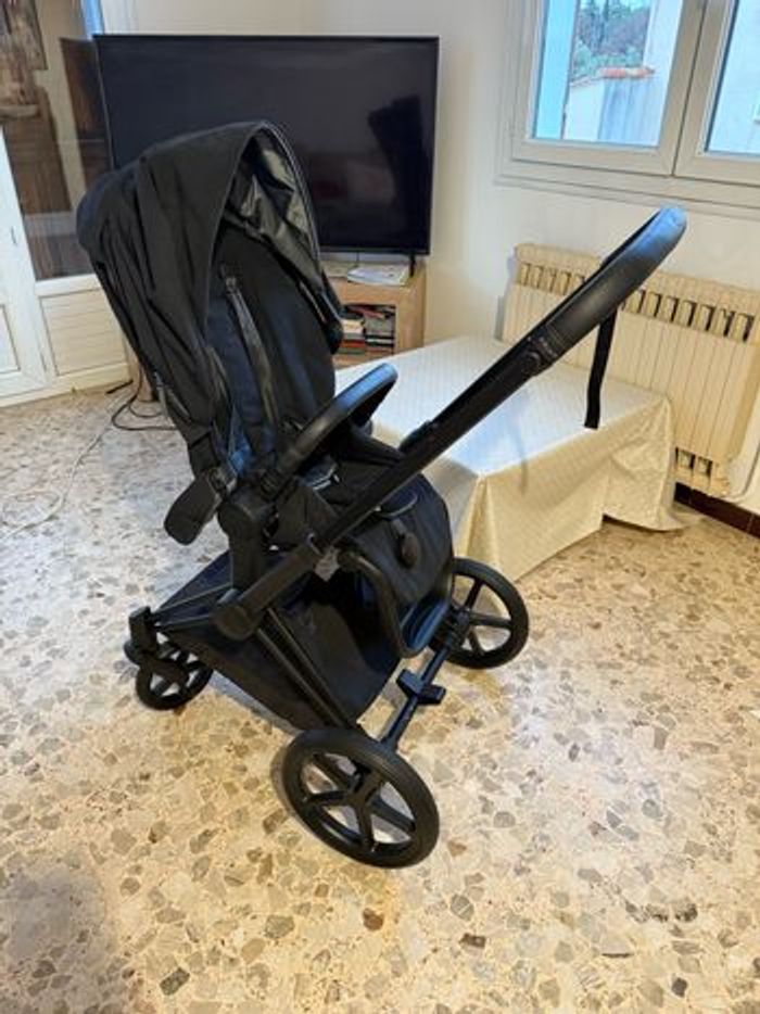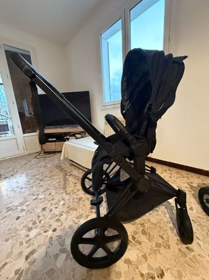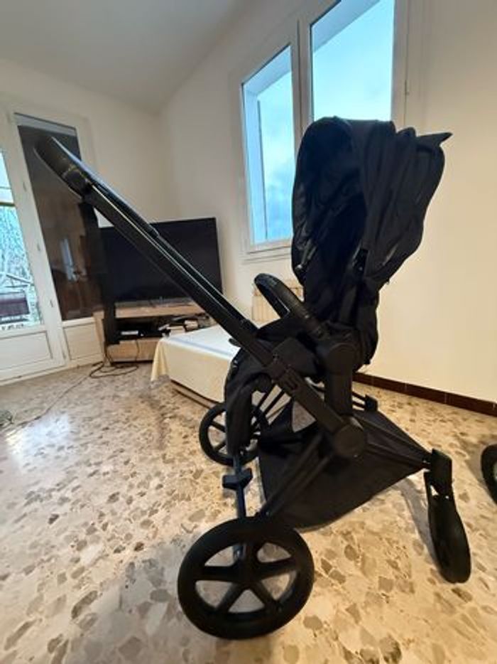 Bonjour madame monsieur Je vends notre poussette Priam édition 2022 Nous attendons notre deuxième bébé et une poussette double sera plus adaptée. C’est à contre cœur car c’est une super poussette ! Légère facile à utiliser Je vends le lot c’est à dire le châssis deep black une marque près de la pédale et une sur le côté sinon il est en très bon état , le siège hamac noir deep black entièrement déhoussable et lavé pour la vente bien sûr Et la nacelle deep black également servie une fois par la sortie de la maternité car j’ai plus utilisé le cosy qui reste pour moi le plus pratique. Seul le cosy ne fait pas partit du lot car il s’adaptera sur notre future poussette J’ai acheté la priam en mai 2023 chez autour de bébé au prix de 1500 euros