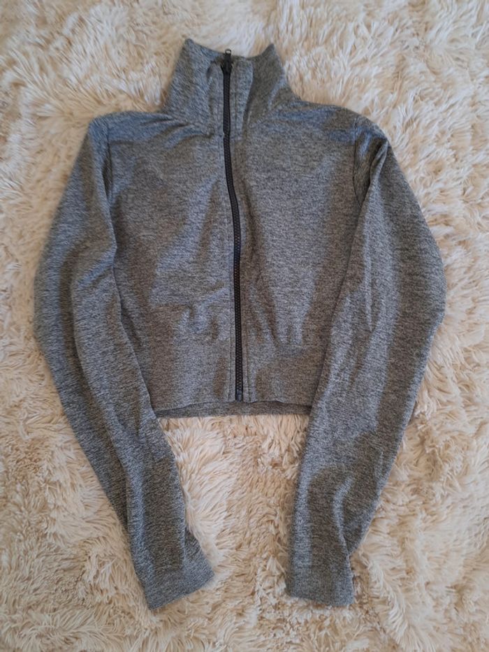 Veste gris chiné élastique crop, parfaite pour le sport 💪