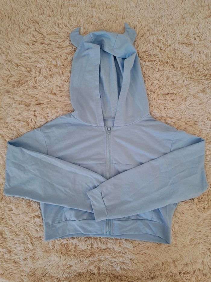 Veste crop top bleu clair avec queue et oreilles de petit démon, style unique et espiègle 😈 - photo numéro 1