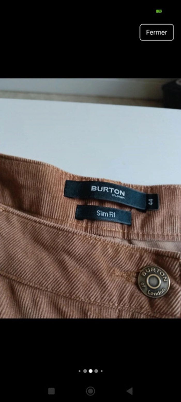 Pantalon homme Burton taille 44 coupe droite en velours effet peau de pêche doux rétro vintage - photo numéro 2