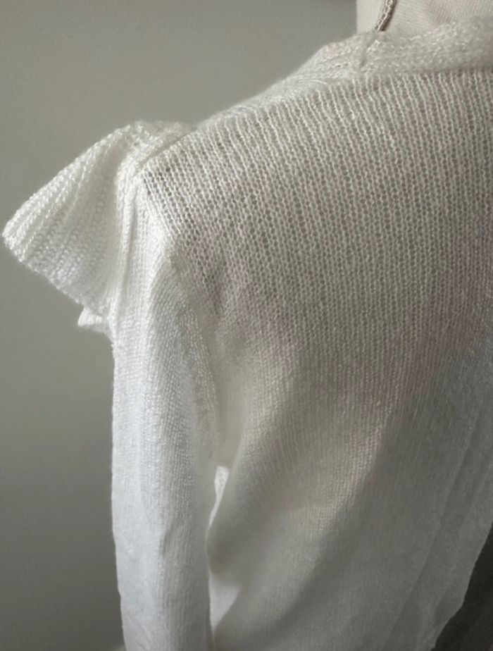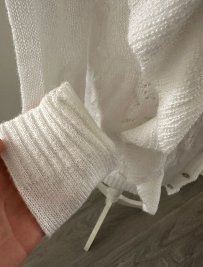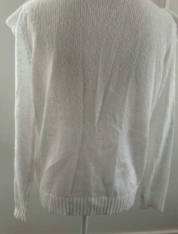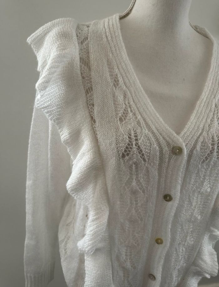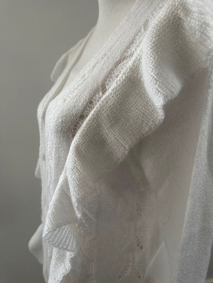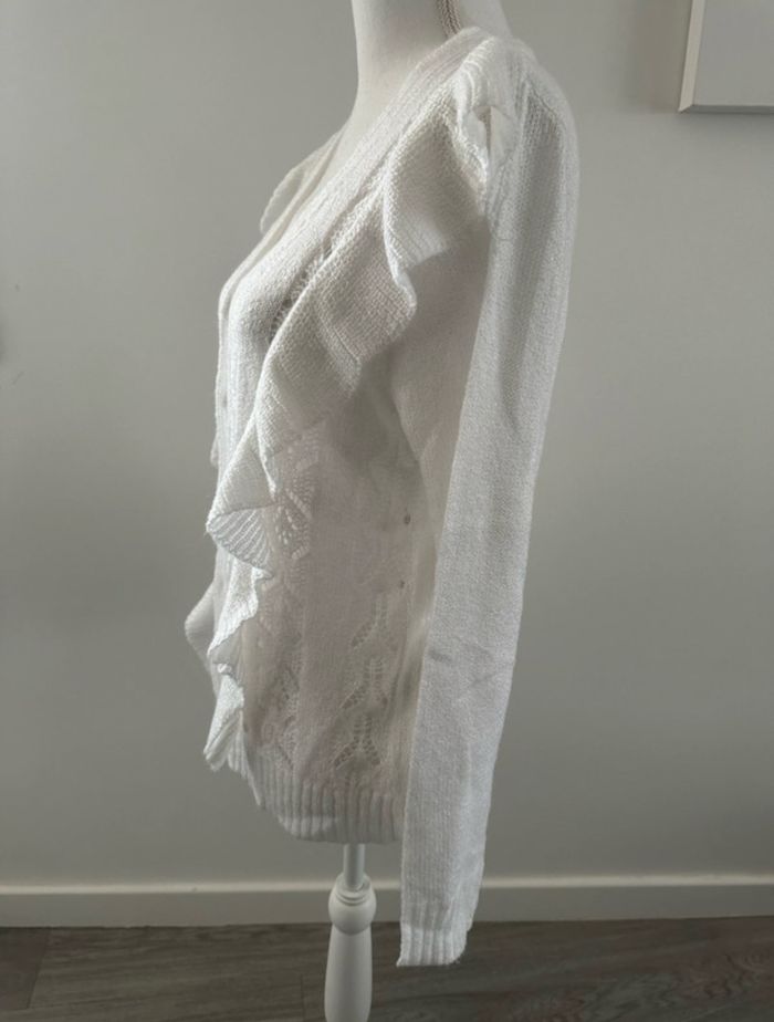 Cardigan maille ajourée et volants blanc Vintage T42/44 XL/XXL