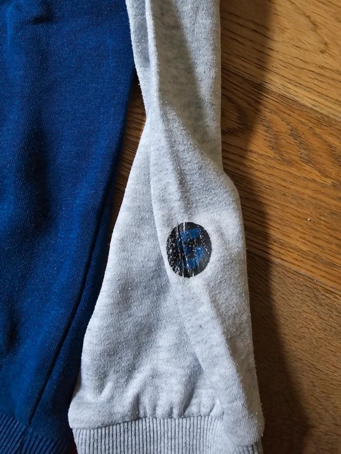 Pull en bon état 2 petites taches qui partiront sûrement au lavage voir photo. Et le dessin sur la manche un peu abîmé Taille 10-12 ans