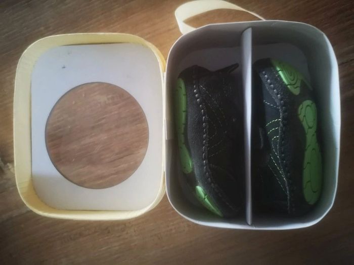 Chaussures souples bébé 6/12 mois Bout renforcé et semelle antidérapante. Portées 1 fois, dans leur boîte d'origine, idéal cadeau.