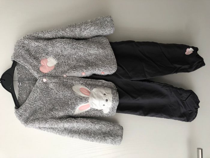 Joli ensemble fille, 2 pièces, composé d'un gilet pelucheux et d'un pantalon élastiqué à la taille. Motif lapin Sans marque Taille 23 mois