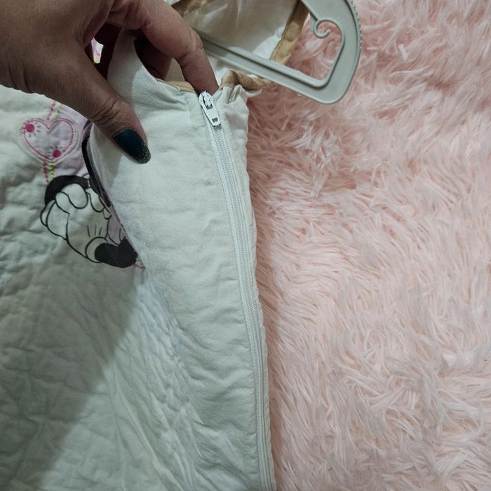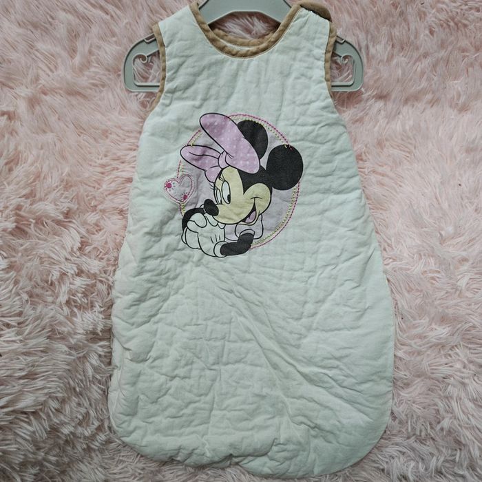 Gigoteuse minnie état convenable elle a bien servi mais peut encore servir. Le tissu s'est un peu endurci et froissé à cause des lavages et la fermeture éclair est dure. Taille 0 6 mois #puériculturebelibel54 #gigoteusebebe