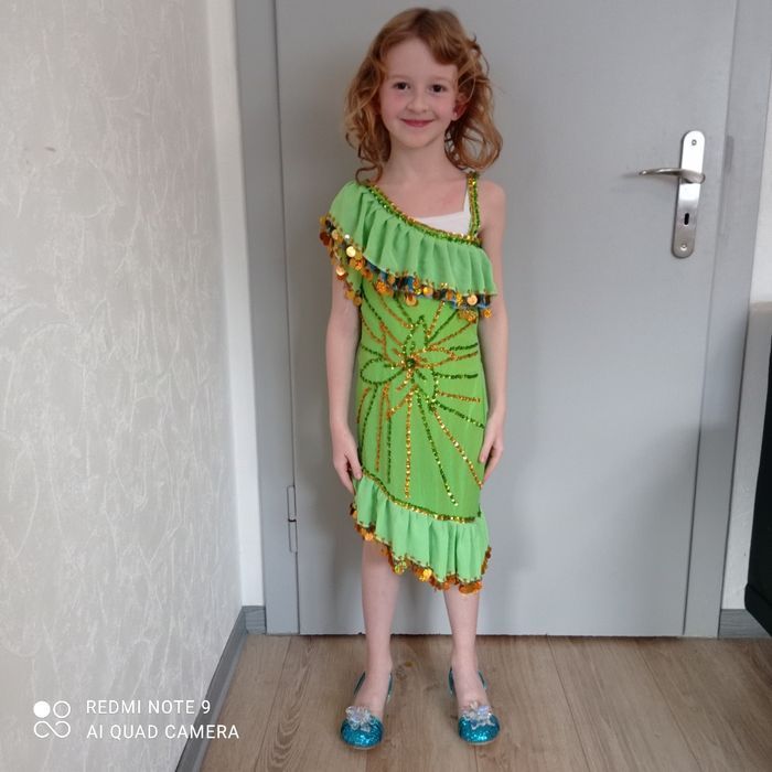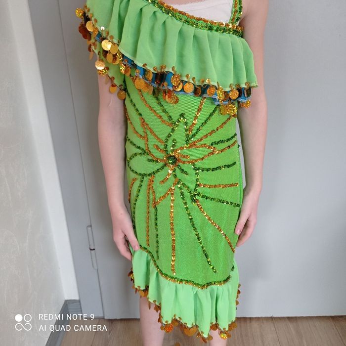 Style déguisement danse orientale. Asymétrique. Une bretelle/une manche. Quelques sequins manquants. Volants. Carnaval. Mardi gras.
