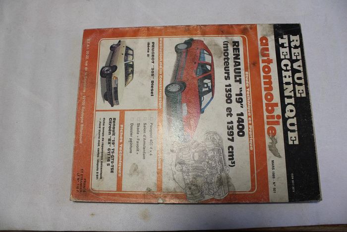 Revue technique traitant de l'entretien et de la réparation de la Renault 19. Pour les modèles à moteur 1390 et 1397 cm3 Revue technique en bon état. taches de graisse sur la couverture Réponse rapide Envoi soigné dans les meilleurs délais