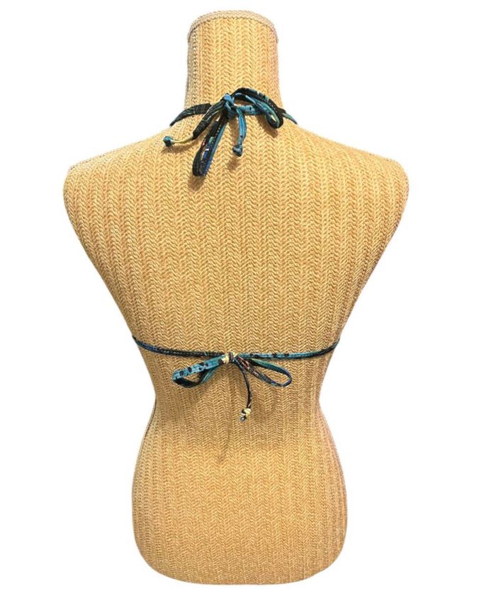 Haut de maillot de bain tropical, parfait pour vos journées ensoleillées. Confectionné avec un extérieur en 85 % nylon et 15 % élasthanne, et une doublure 100 % polyester, il allie confort et élégance.
