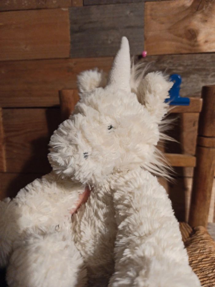 Peluche licorne blanche fuddlewuddle Jellycat Tbe N'hésitez pas à faire un lot pour économiser sur les frais de port Pour voir les autres articles de la même catégorie : #badaboooom_peluches #badaboooom_jellycat