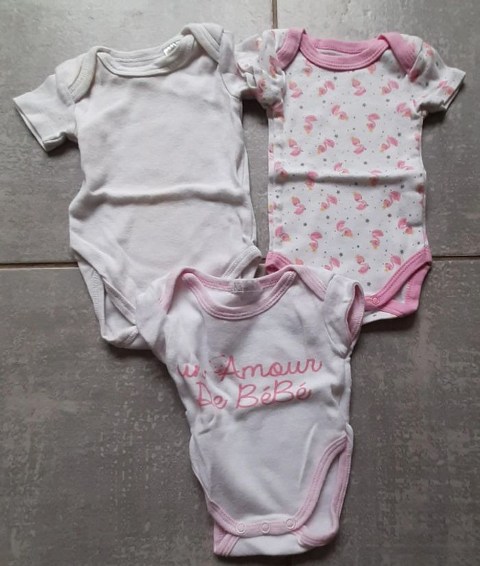 Lot 3 bodies fille manches courtes 1 mois le blanc est légèrement tâcher au col