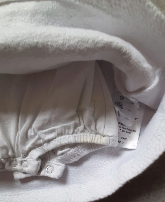Robe vertbaudet 1 mois bodie intégré tâcher et présente de légère traces jaunes derrière et devant